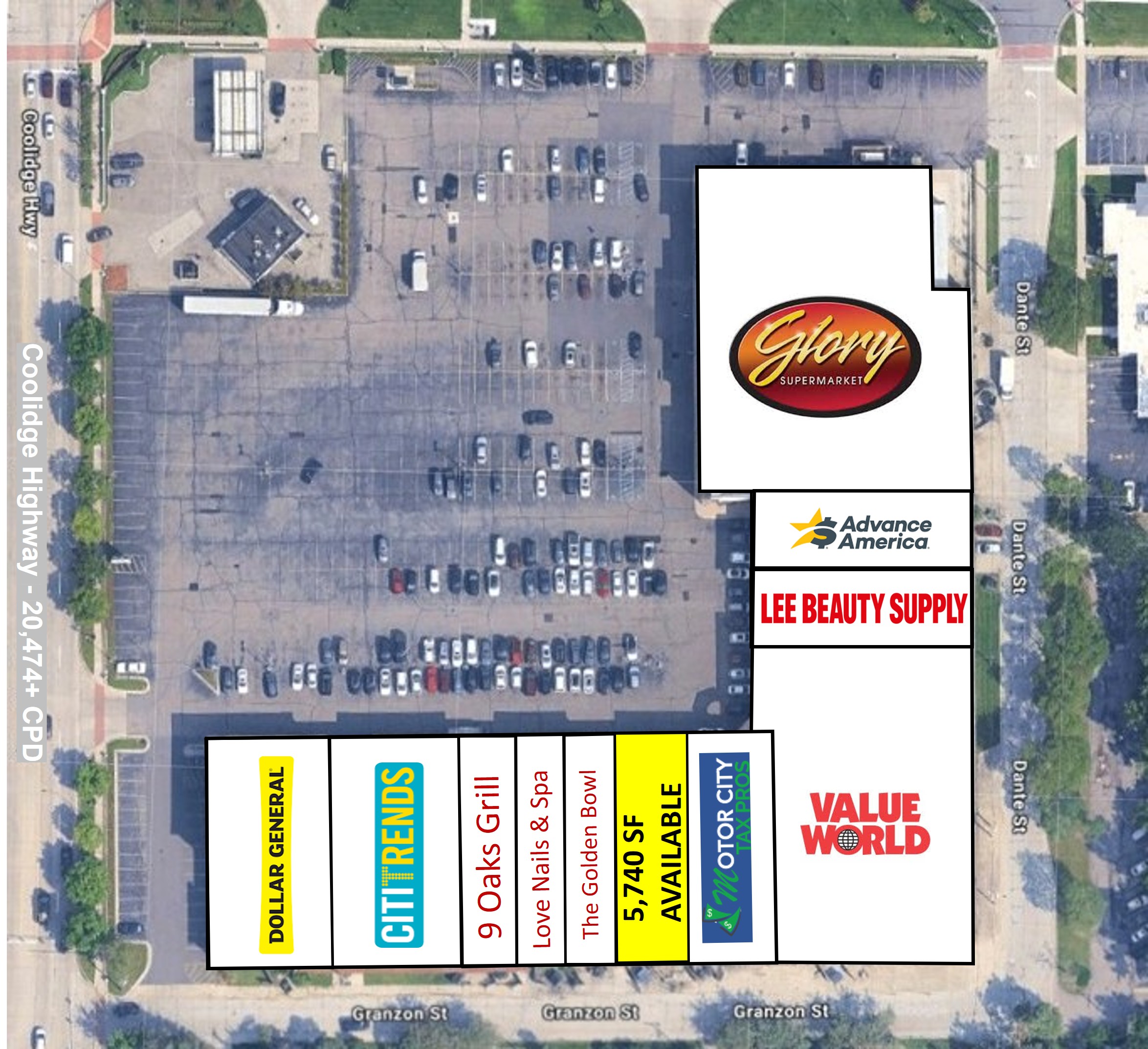 Prime retail opportunity in Park Place Shopping Center, a well-established neighborhood center in the heart of Oak Park, MI. This is the last space available for lease positioned within a highly visible retail corridor and benefits from consistent daily traffic generated by strong co-tenancy including Glory Market, Dollar General, Citi Trends, and Value World, well established traffic-driving anchors.